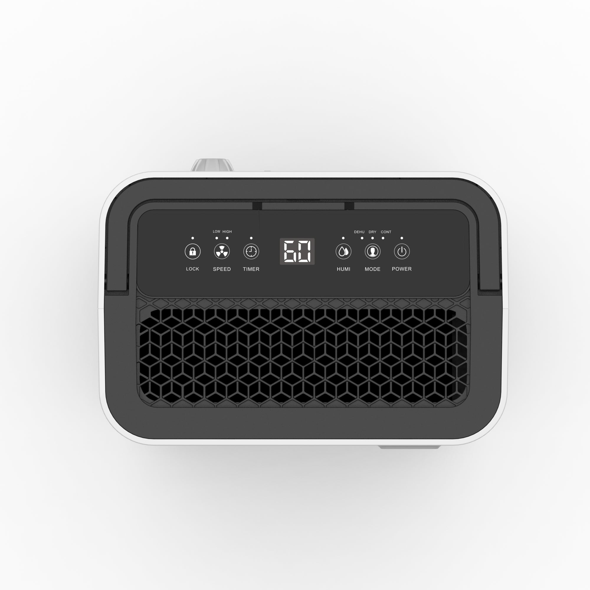 3 moduri de funcționare: dezumidificare, dezumidificare continuă, uscare rufe;2 trepte de viteză;Rezervor sau drenaj continuu;Oprire automată atunci când rezervorul este plin;Control tactil cu afișaj cu led;Display digital;Funcție blocare ecran;Funcție me