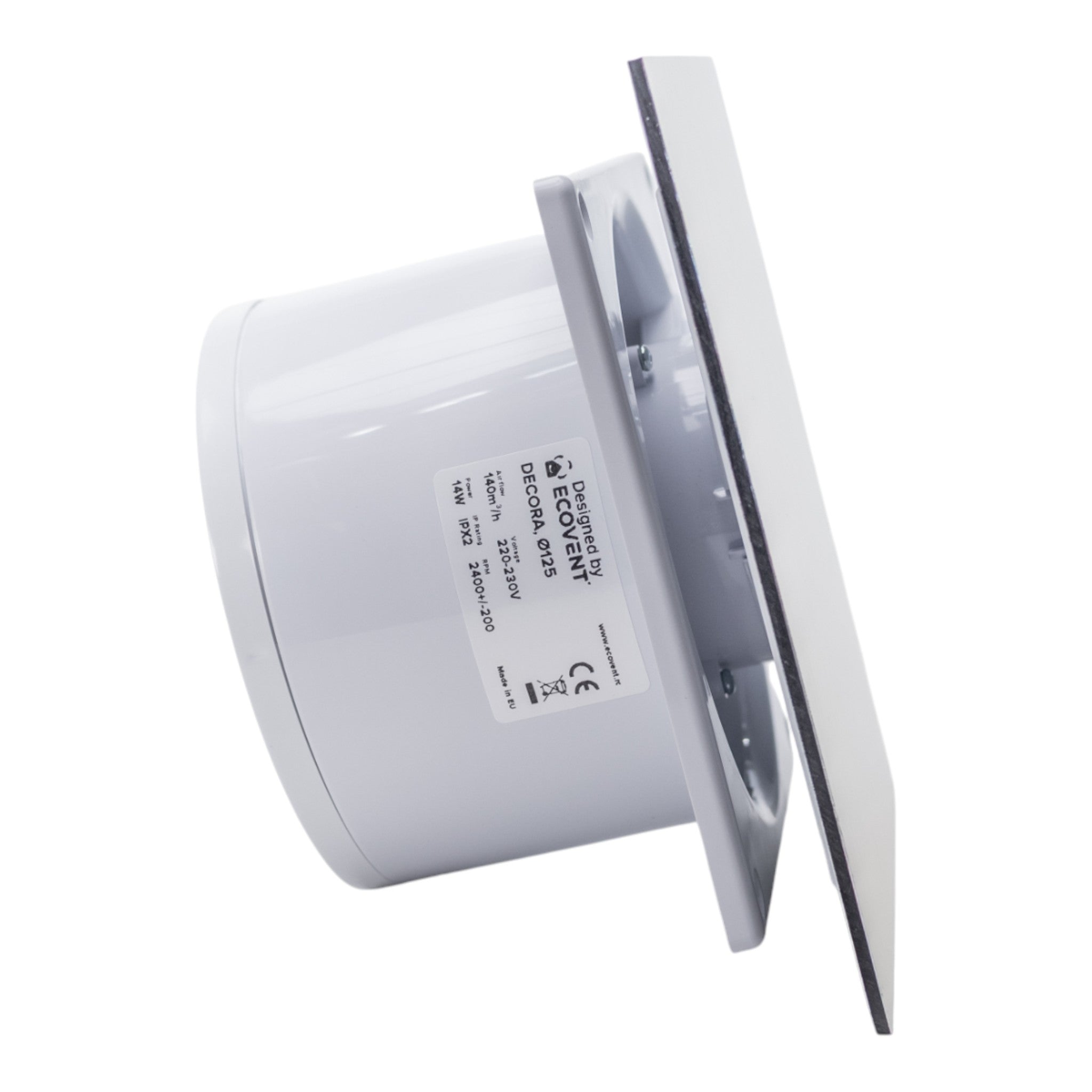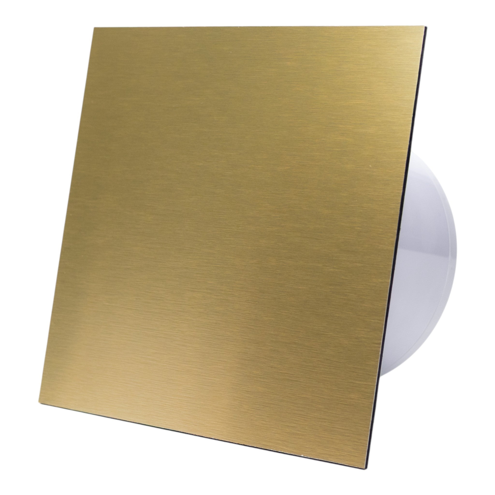 Ventilator de baie Ecovent DECORA, Ø125, Super Silent, Panou Plexiglas schimbabil, Clapetă antiretur, Debit 140 m3/h, Garanție 5 ani, Auriu Satinat