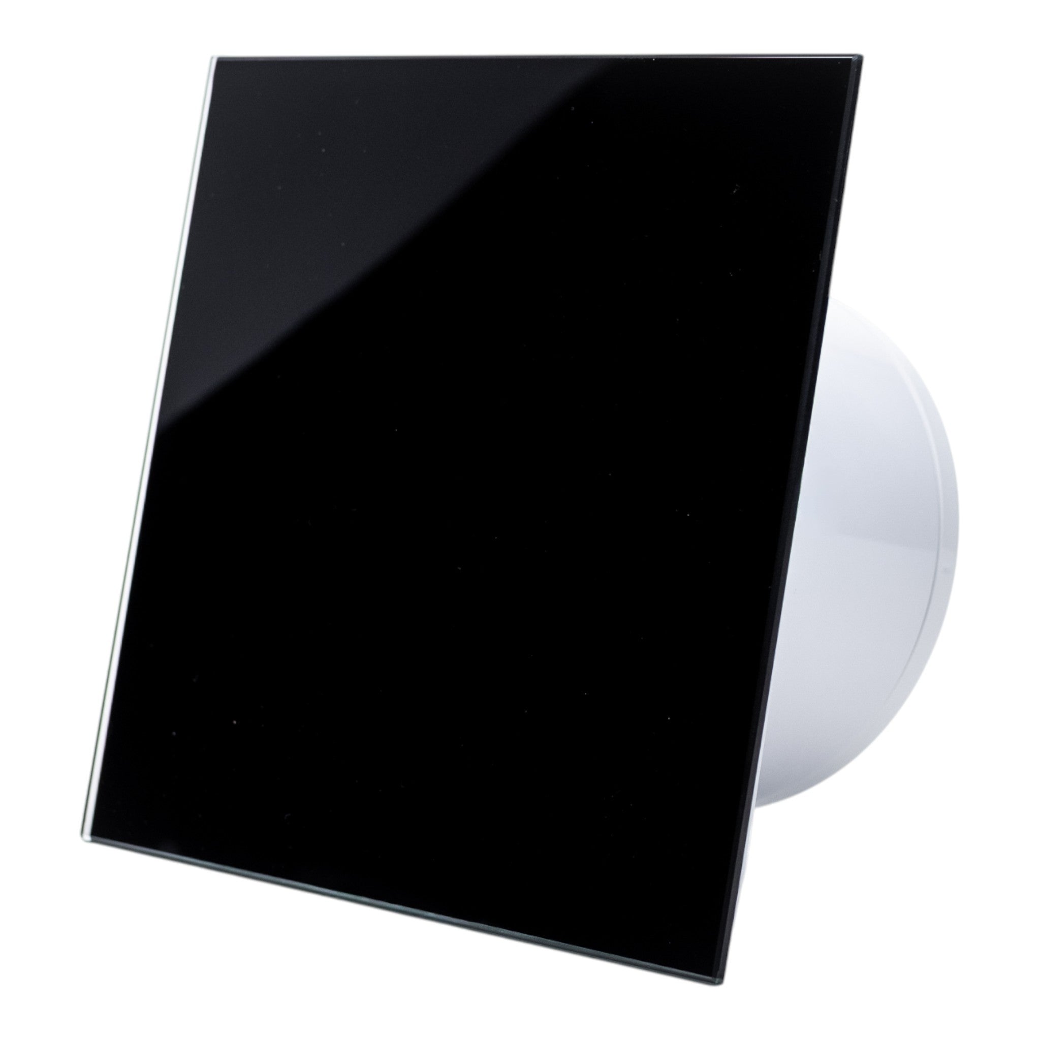Ventilator de baie Ecovent DECORA SMART, Ø125, Super Silent, Senzor Umiditate, Timer, Panou sticlă, Clapetă antiretur, Debit 140 m3/h, Garanție 5 ani, Negru