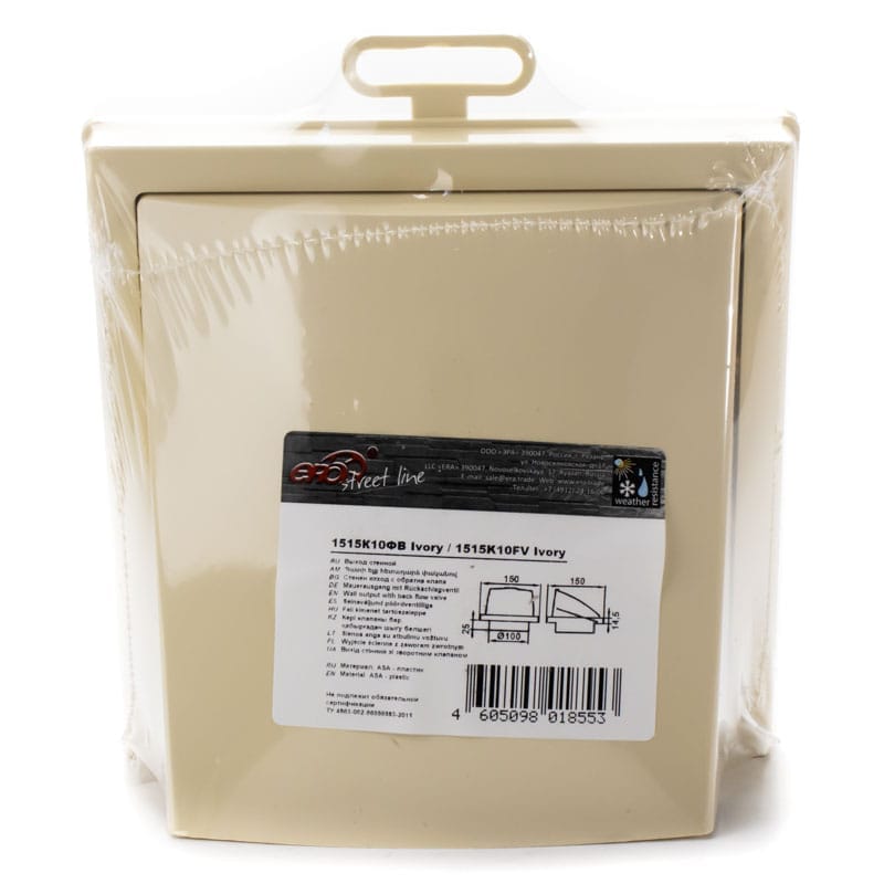 Grila ventilatie Ø100x55mm, patrata cu clapeta antiretur, exterior 150x150, ASA plastic, Ivory