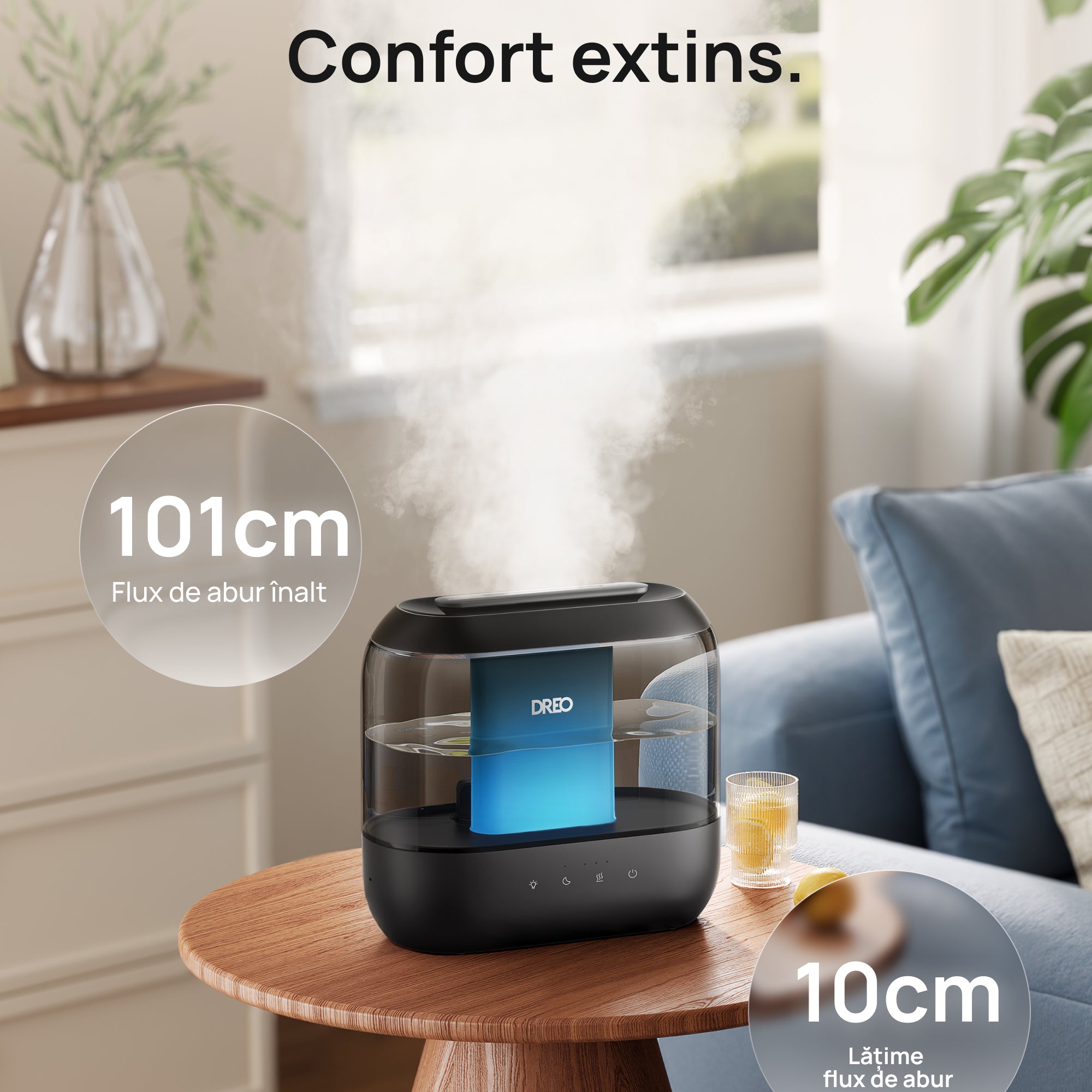 Abur generos, ameliorare rapidă: Susținut de designul Dreo cu admisie dublă, acest umidificator creează un flux de abur de 3 ori mai mare decât majoritatea aparatelor, oferind o ameliorare rapidă împotriva aerului uscat și ajutându-te să respiri ușor și sănătos.