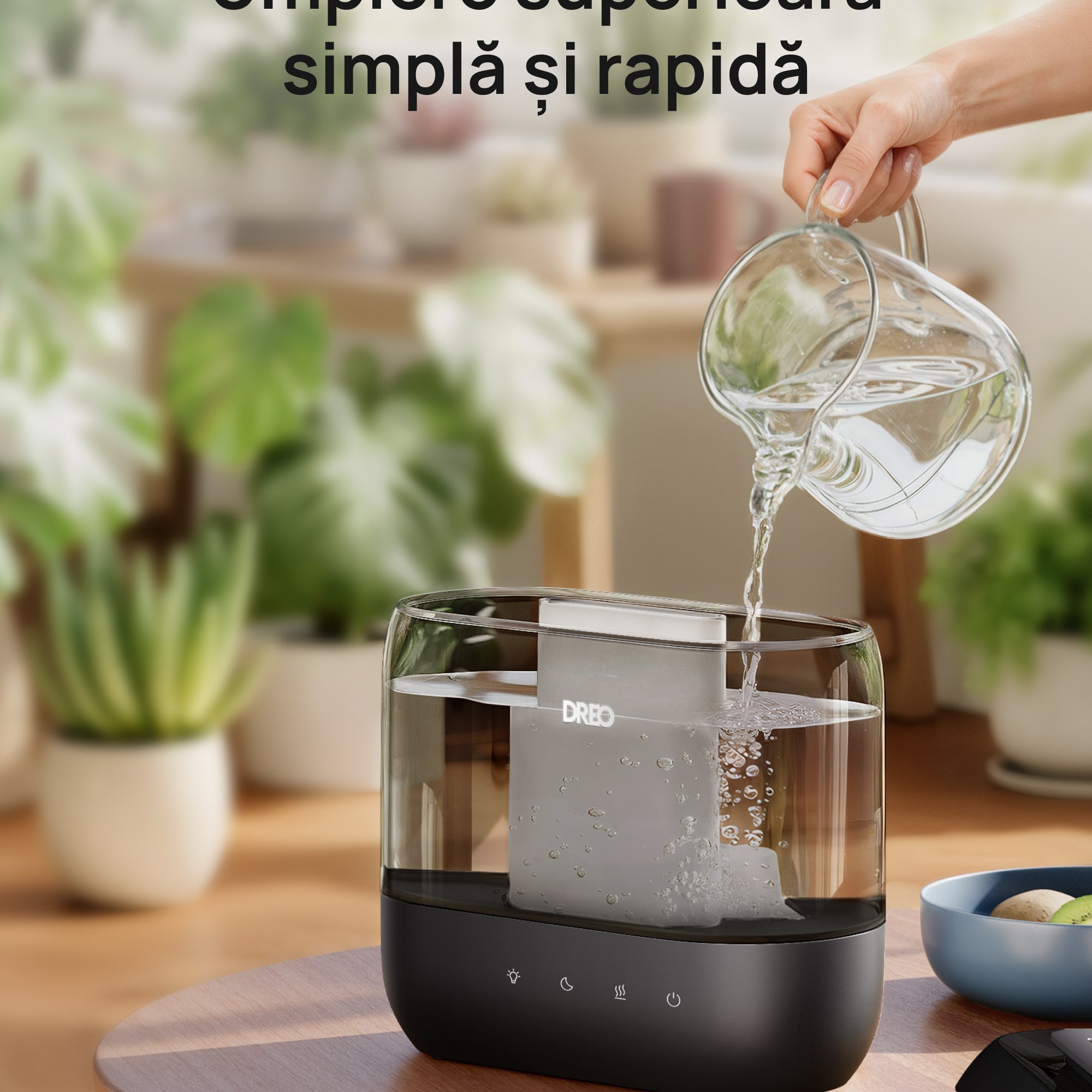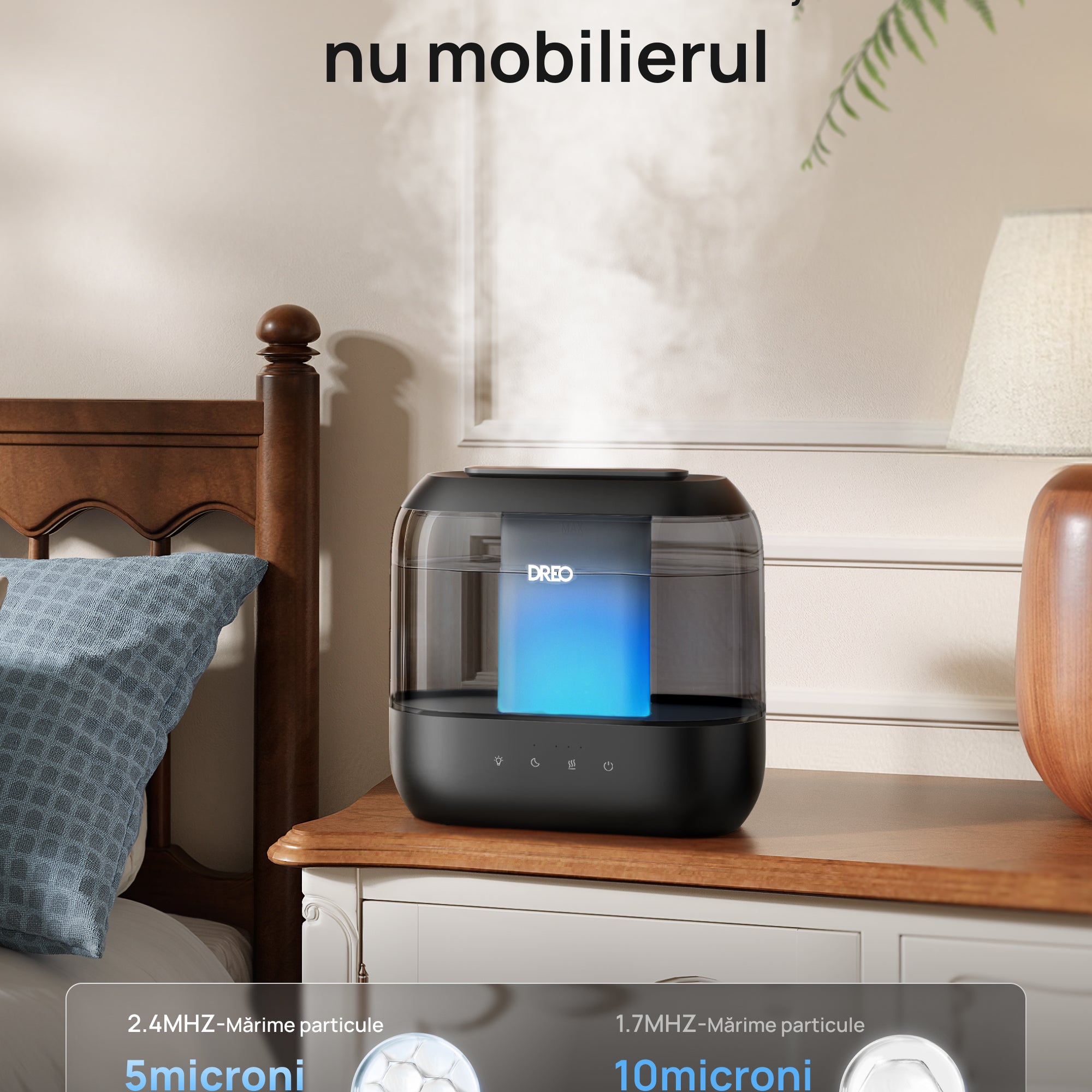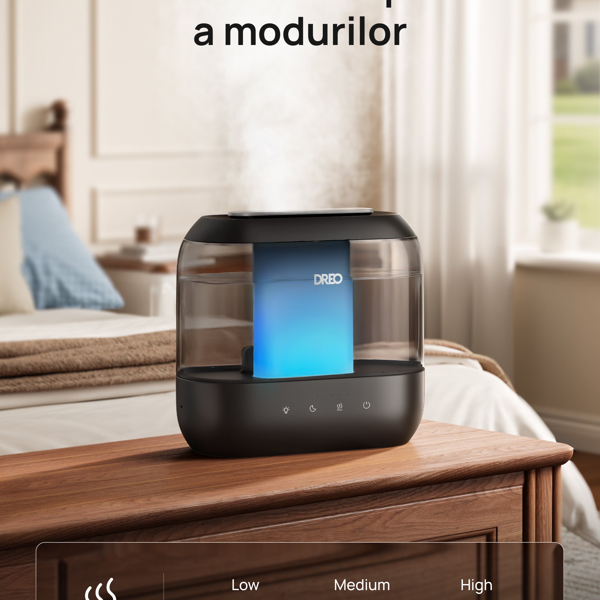 Umiditate precisă, confort sporit: În sfârșit poți controla umiditatea de acasă cu umidificatorul inteligent Dreo pentru dormitor; algoritmul său avansat și Modul Auto detectează nivelurile de umiditate cu o precizie de două ori mai mare, în timp ce lumina ambientală inteligentă te ține mereu la curent cu schimbările nivelului de umiditate.