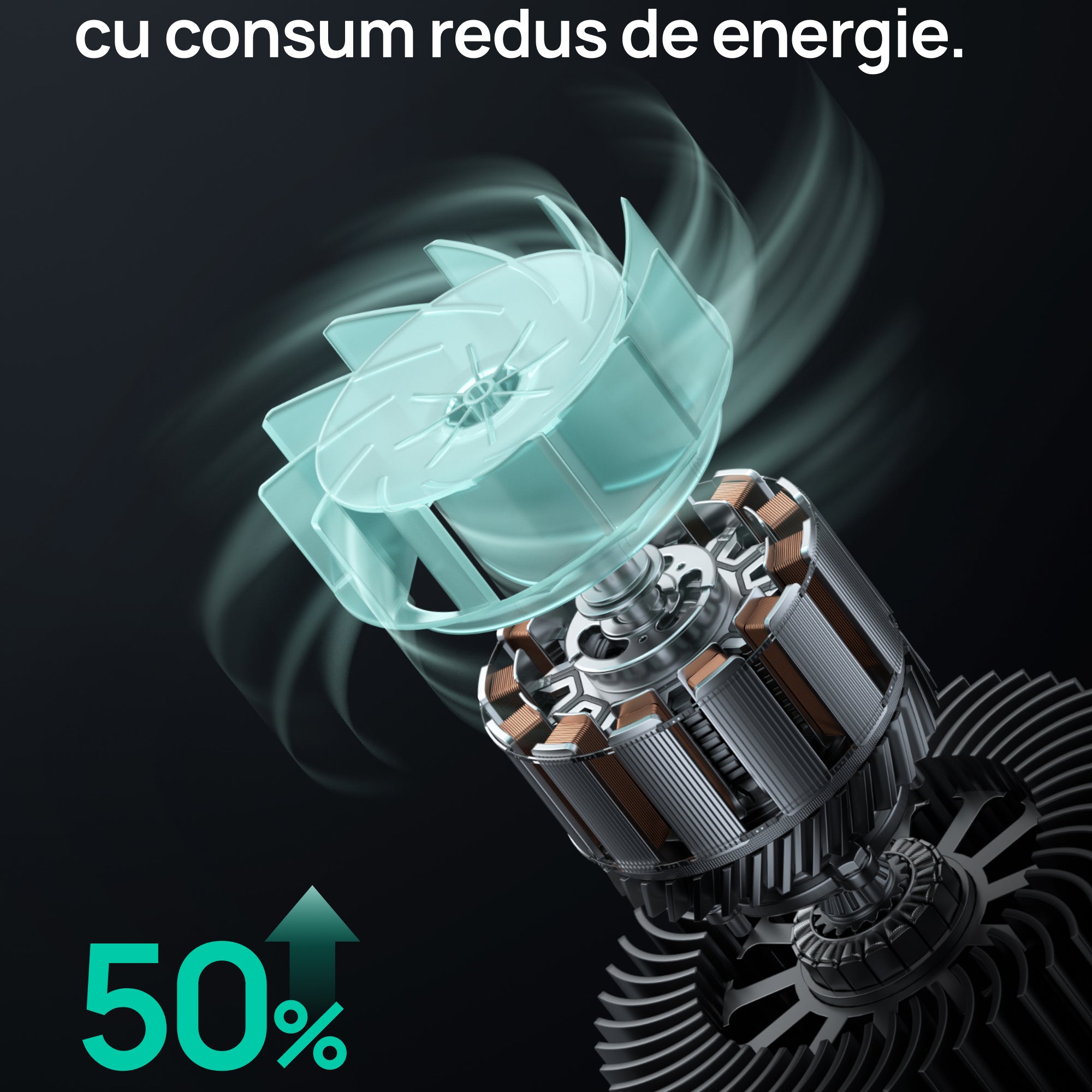 Acoperire: Până la 82 m2/h cu un consum minim de 17.5W (Motor DC).