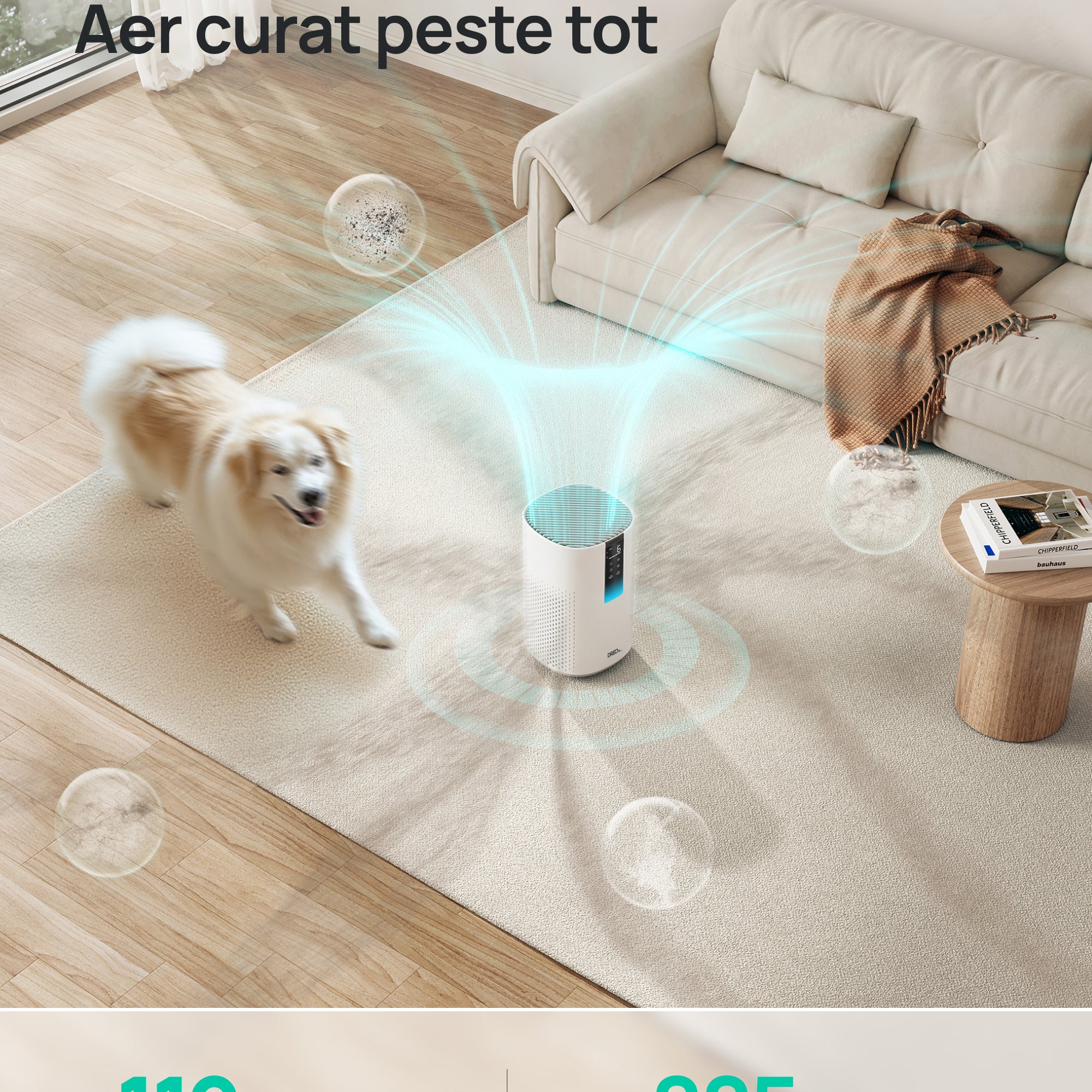 Economie Reală: Datorită motorului avansat de tip DC, consumă cu 50% mai puțină energie decât purificatoarele vechi cu motor AC.
