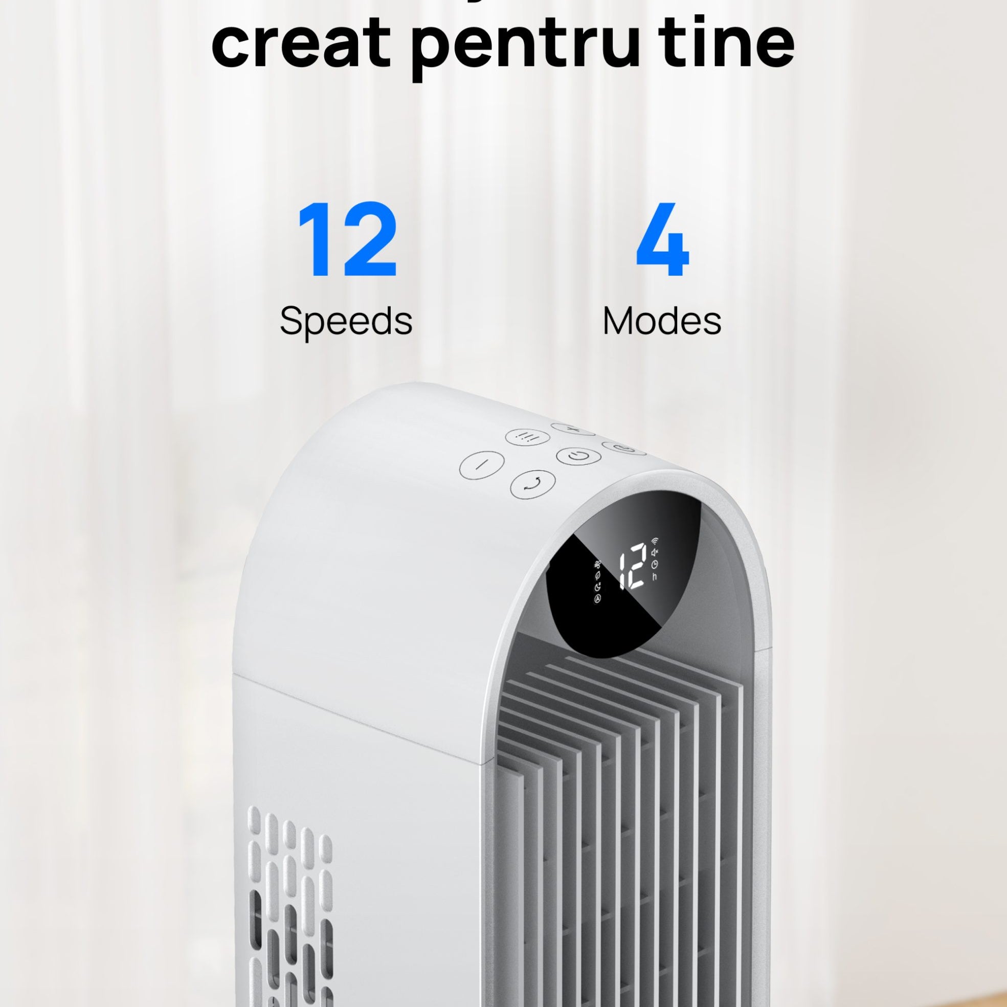 Ai la dispoziție 12 trepte de viteză și 4 moduri de funcționare (inclusiv modul automat sau modul pentru somn), astfel încât să găsești mereu setarea ideală pentru confortul tău.