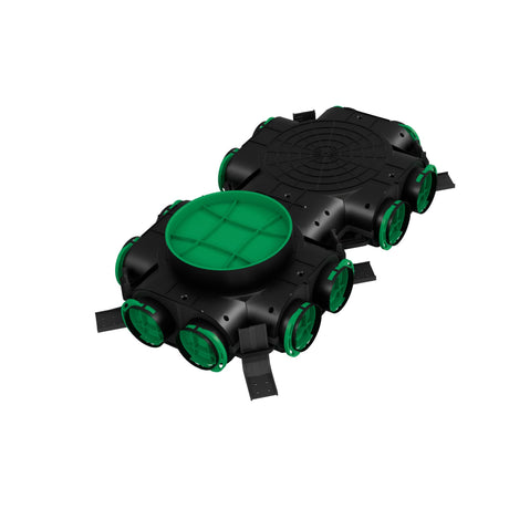 Ofertă de preț 72999 lei 79999 leiPreț per unitate /IndisponibilCutie de distribuție cu racord lateral - Ø160 / 10xØ75 Awenta, Negru